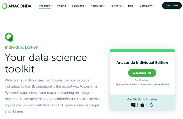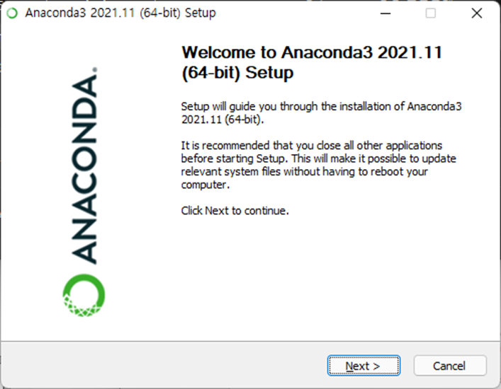 1. 아나콘다 홈페이지에서 아나콘다 인스톨러를 다운로드합니다.