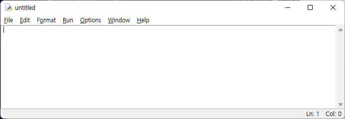 2. IDLE Shell 프로그램에서 “File --> New File”을 클릭하면 빈 창의 에디터가 나타납니다. IDLE 에디터 창은 파이썬 프로그램을 작성하기 위한 에디터입니다.