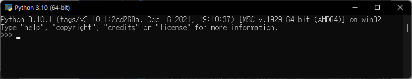 4. Python 3.10 (64-bit)를 클릭해보면 파이썬 쉘이 실행됩니다. 파이썬 쉘을 종료하려면 “Ctrl + Z”를 한 후 “Enter”키를 누르면 종료됩니다.